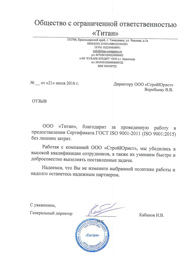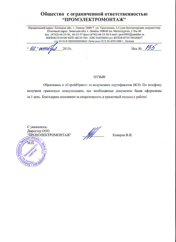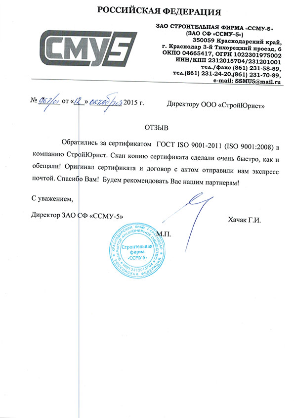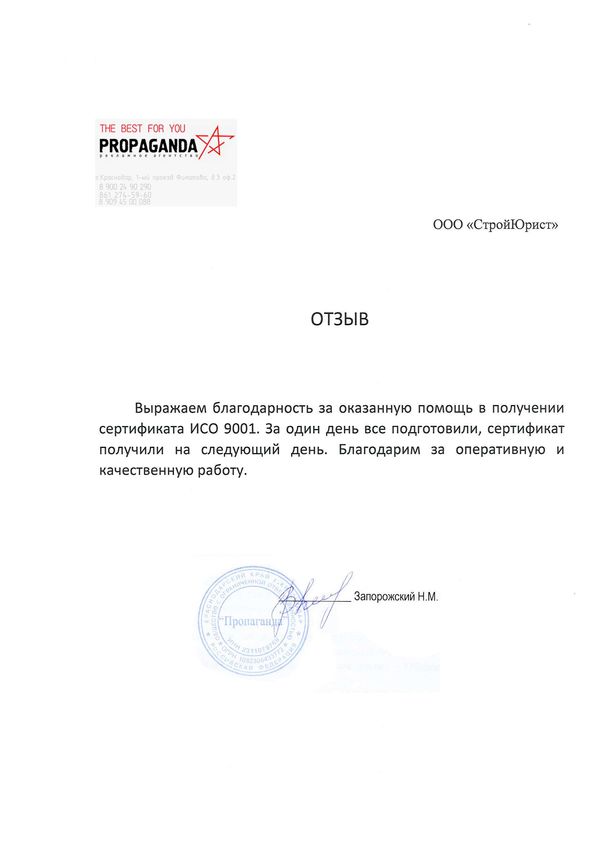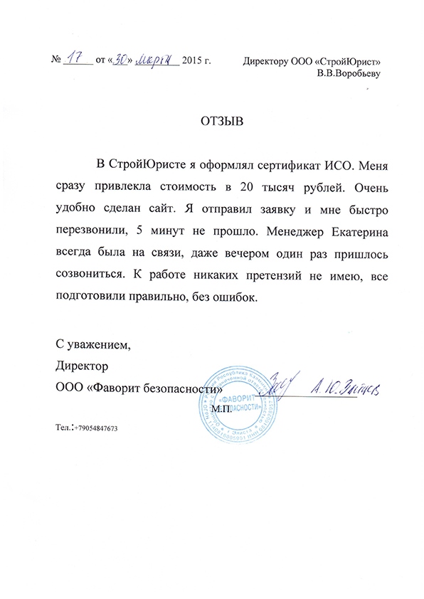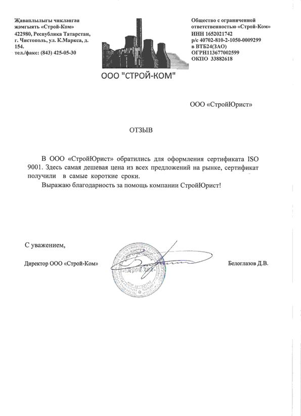 Отзывы клиентов "СтройЮрист" по ISO в Красногорске