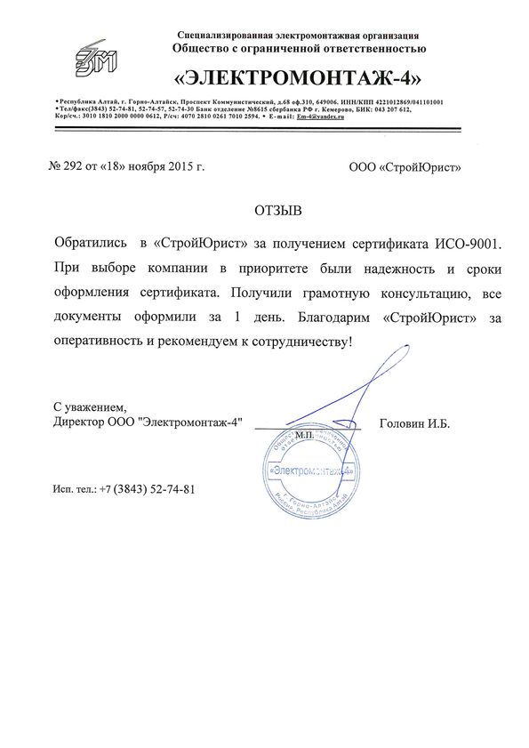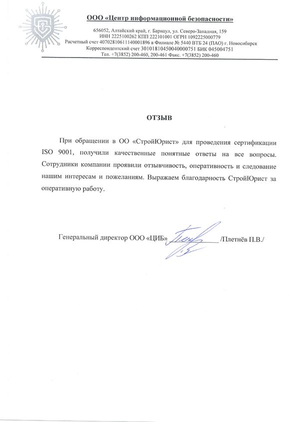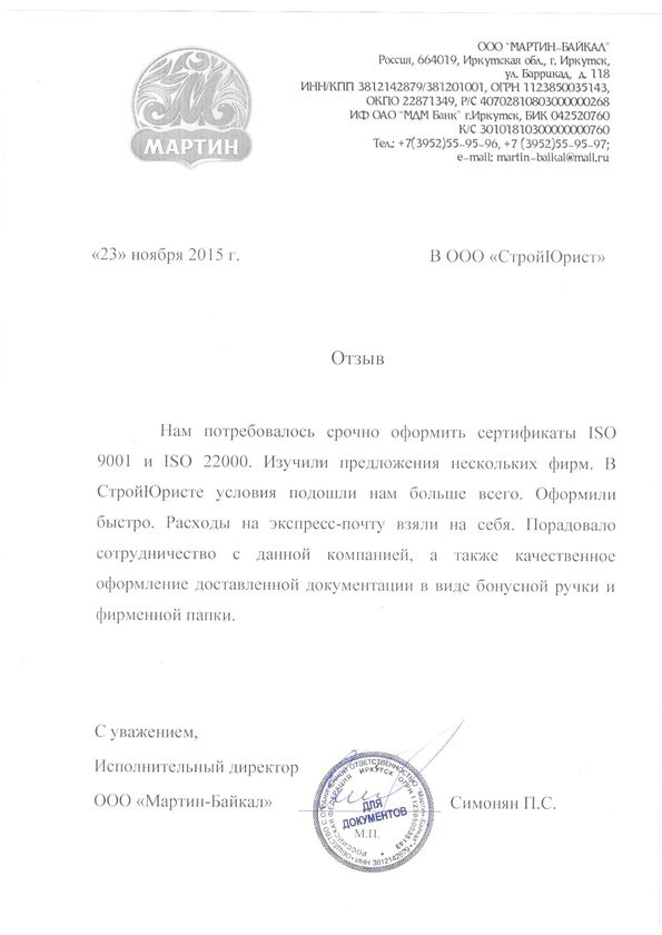 Отзывы клиентов "СтройЮрист" по ISO в Красногорске