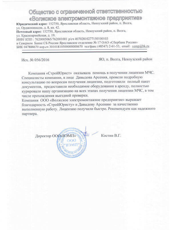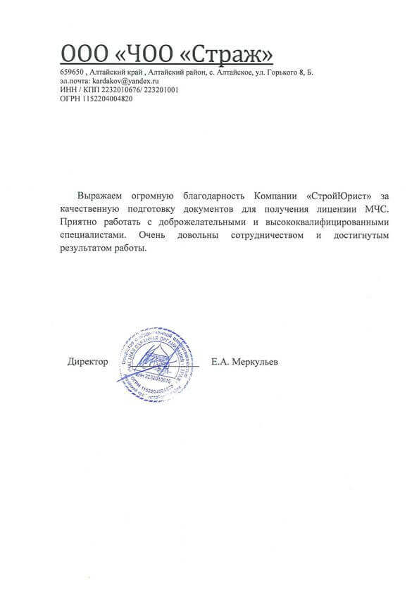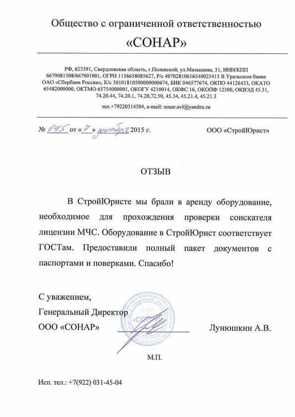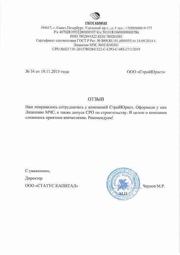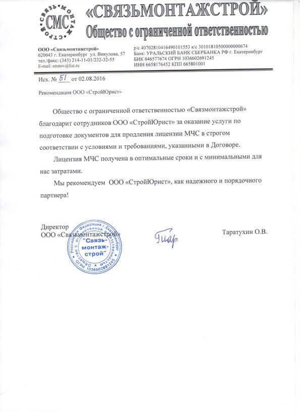 Отзывы клиентов "СтройЮрист" по лицензированию МЧС в Красногорске