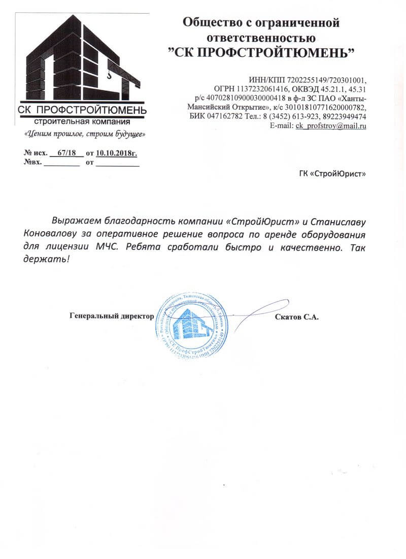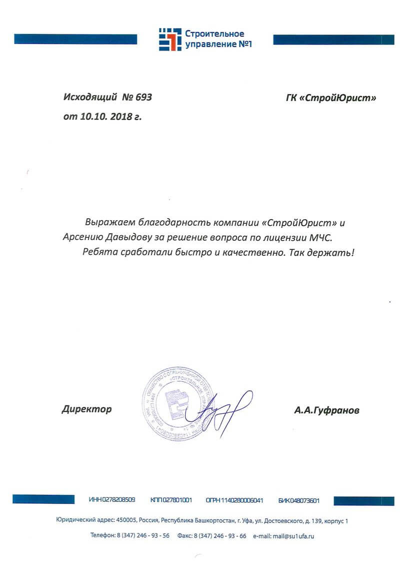 Отзывы клиентов "СтройЮрист" по лицензированию МЧС в Красногорске