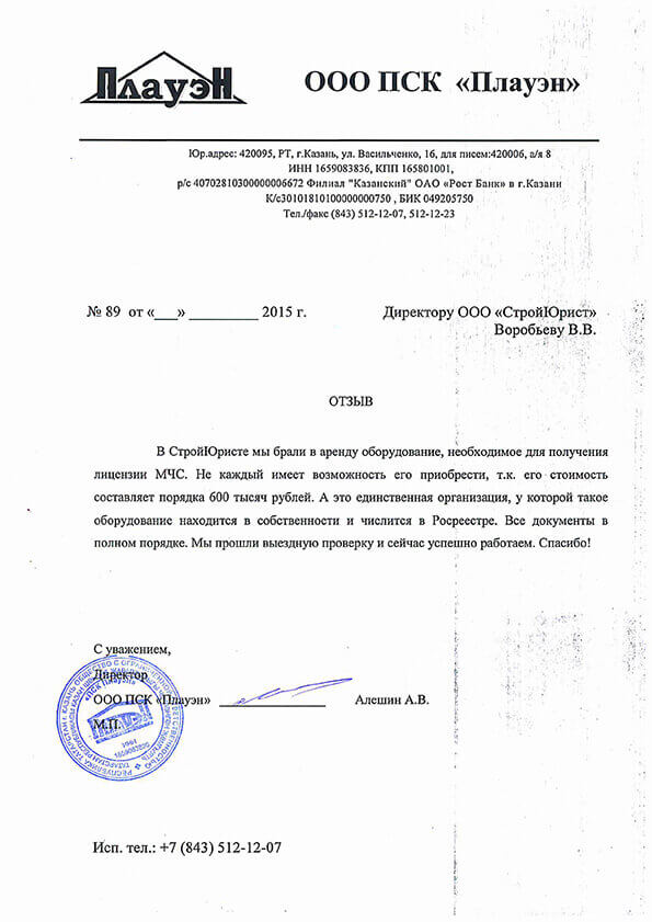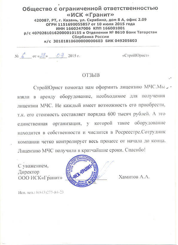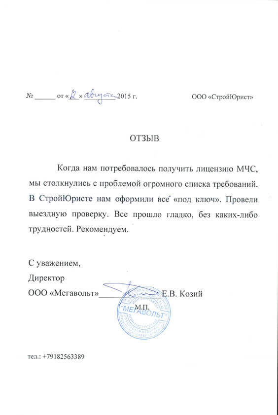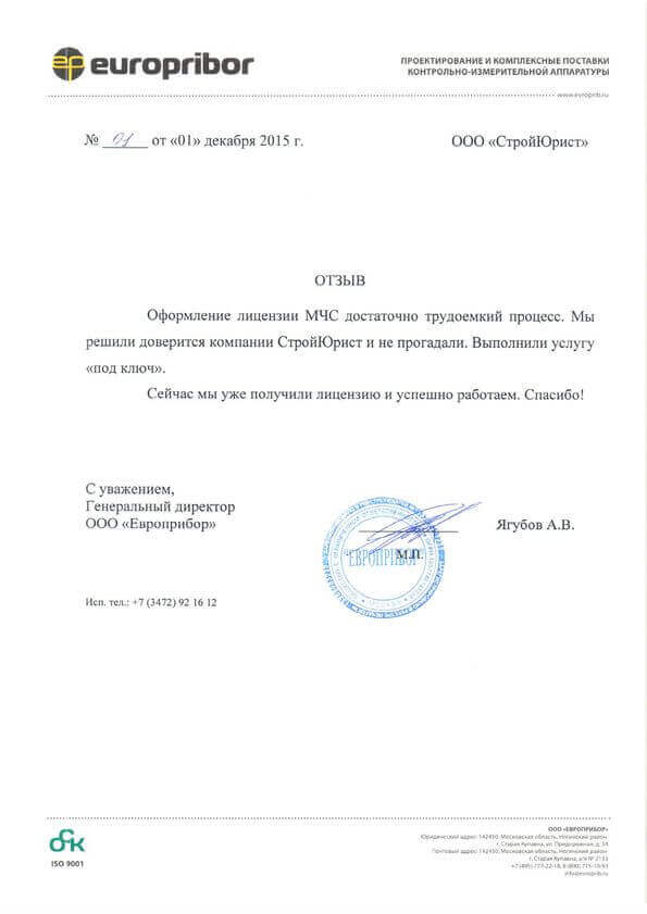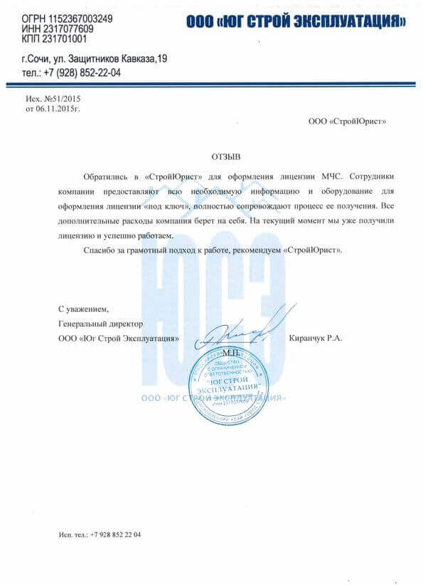 Отзывы клиентов "СтройЮрист" по лицензированию МЧС в Красногорске