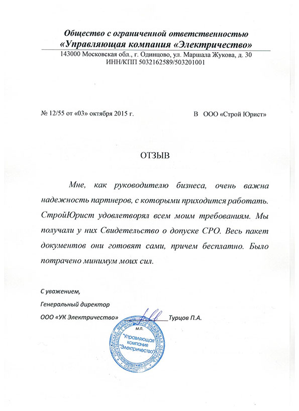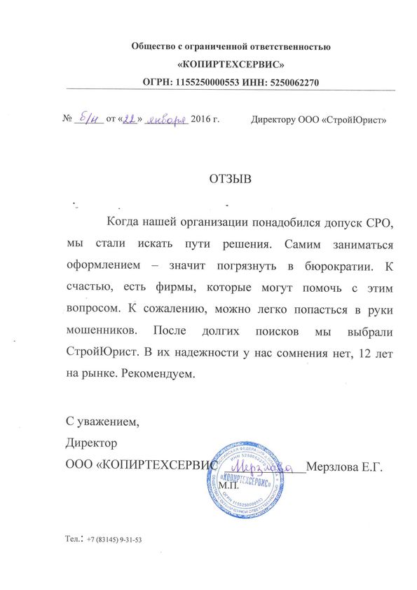 Отзывы клиентов "СтройЮрист" по вступлению в СРО в Красногорске