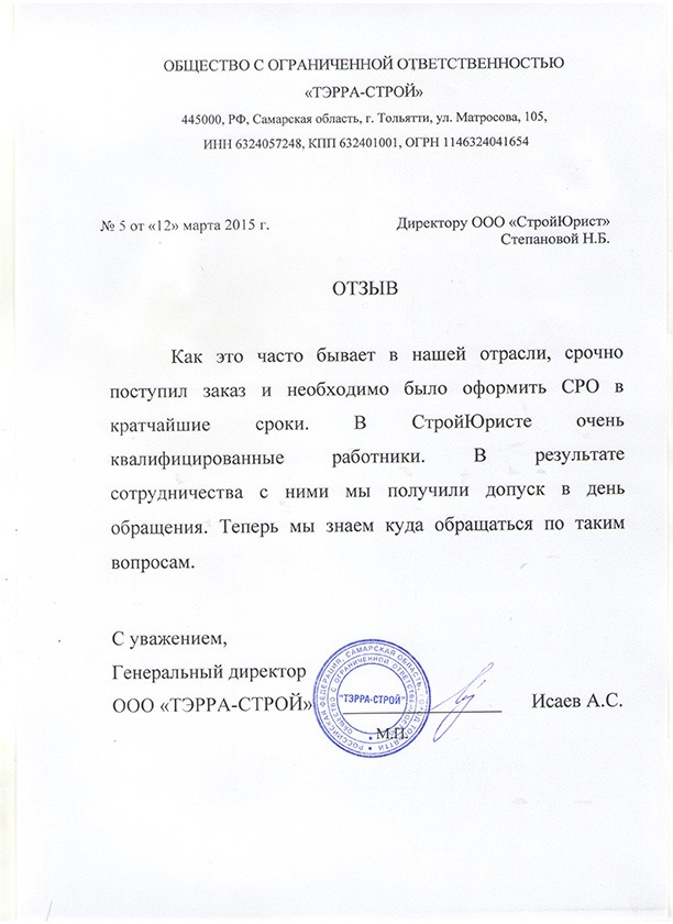 Отзывы клиентов "СтройЮрист" по вступлению в СРО в Красногорске