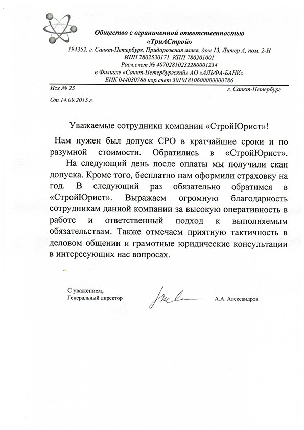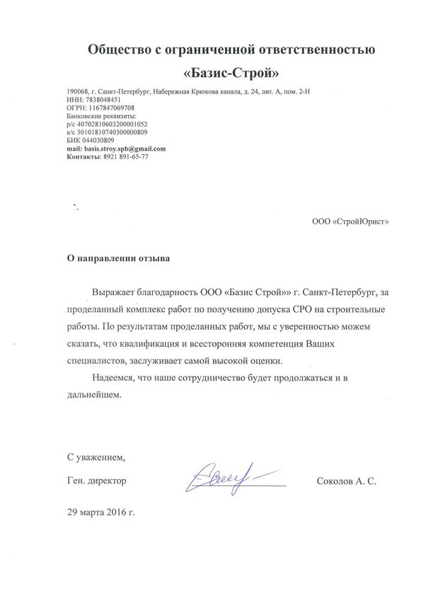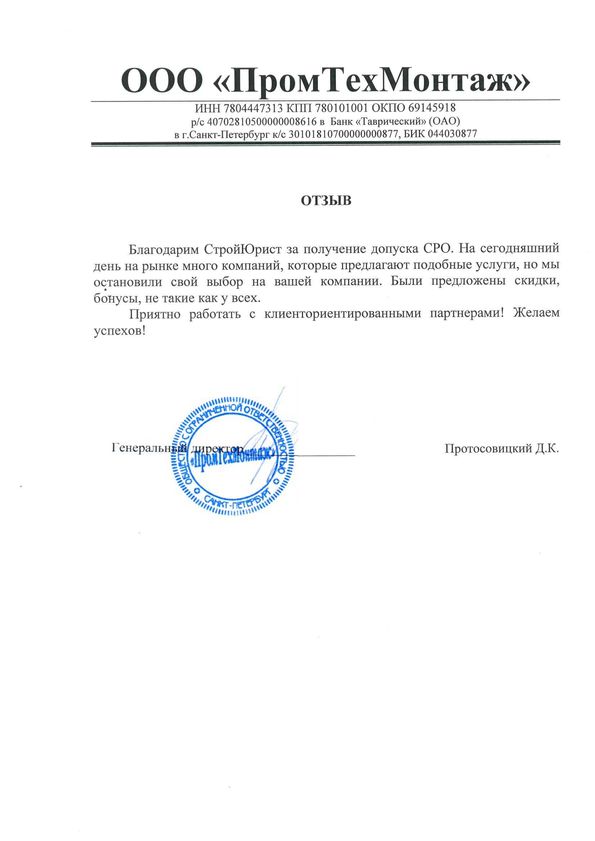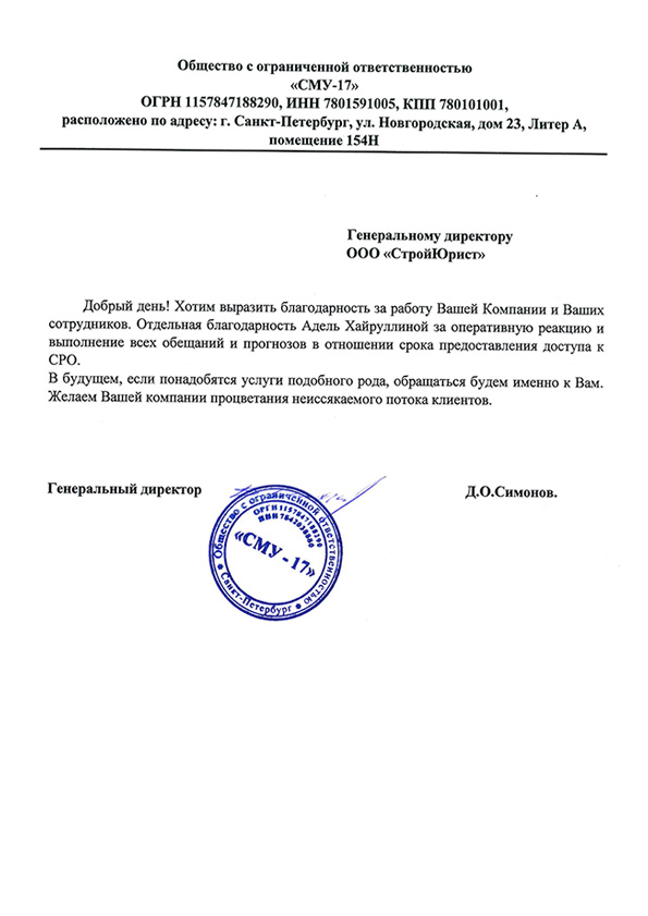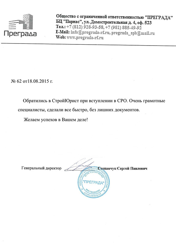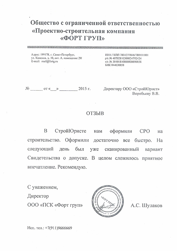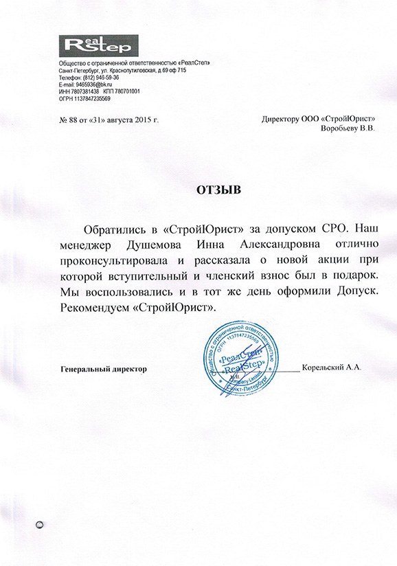 Отзывы клиентов "СтройЮрист" по вступлению в СРО в Красногорске
