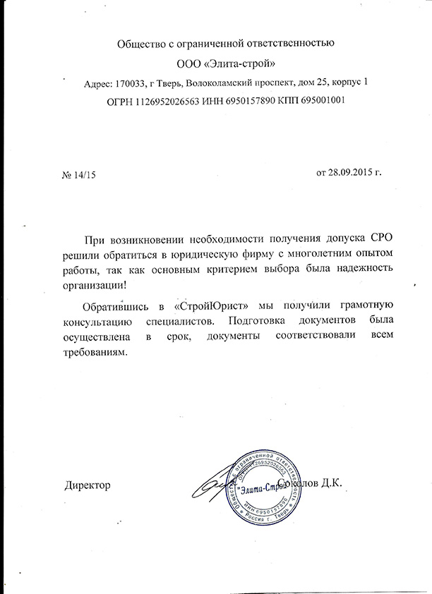Отзывы клиентов "СтройЮрист" по вступлению в СРО в Красногорске
