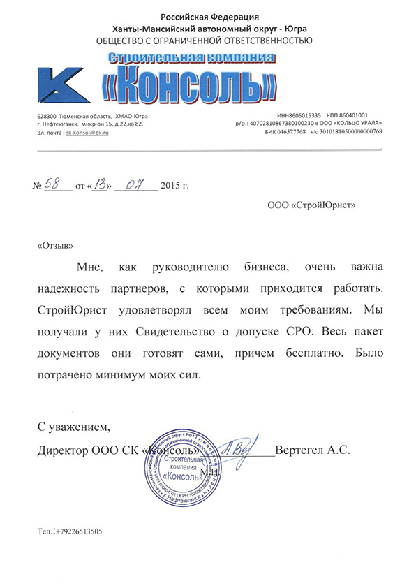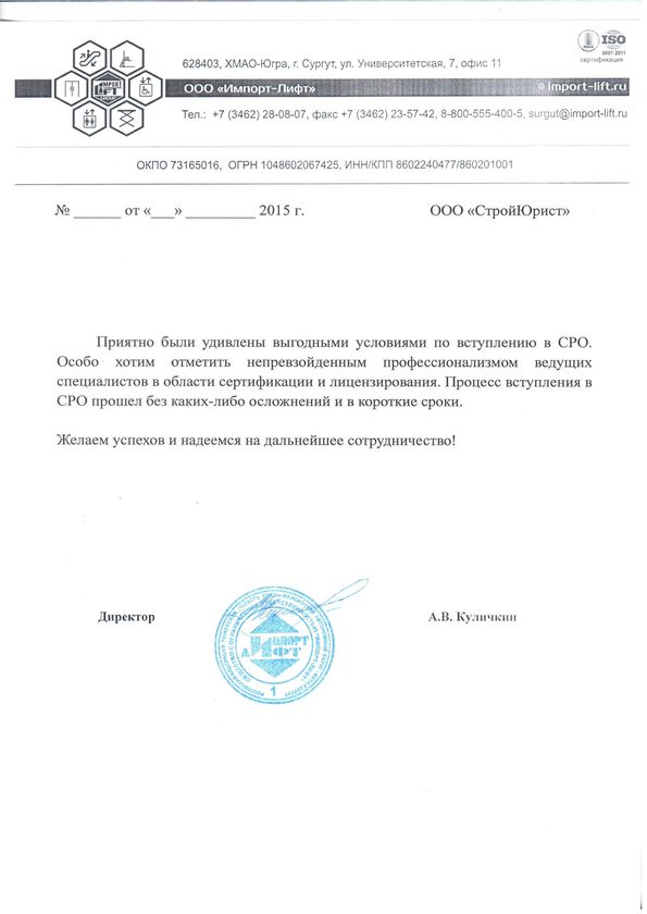 Отзывы клиентов "СтройЮрист" по вступлению в СРО в Красногорске