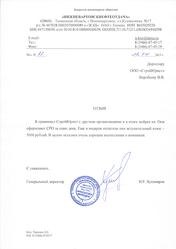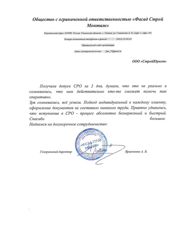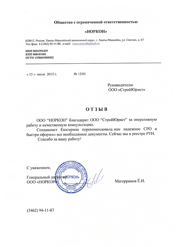 Отзывы клиентов "СтройЮрист" по вступлению в СРО в Красногорске