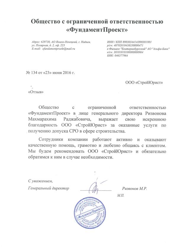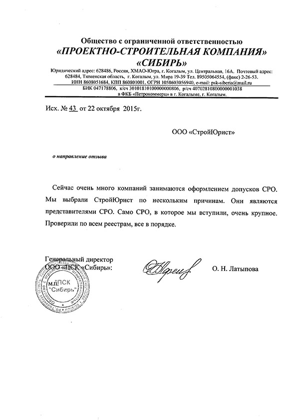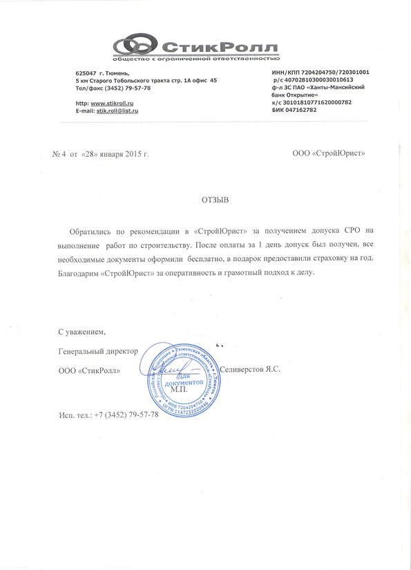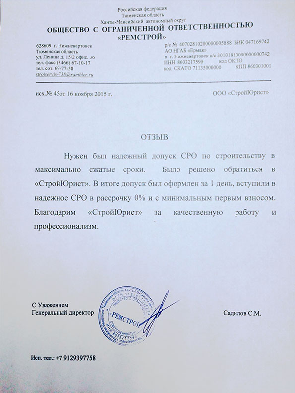 Отзывы клиентов "СтройЮрист" по вступлению в СРО в Красногорске