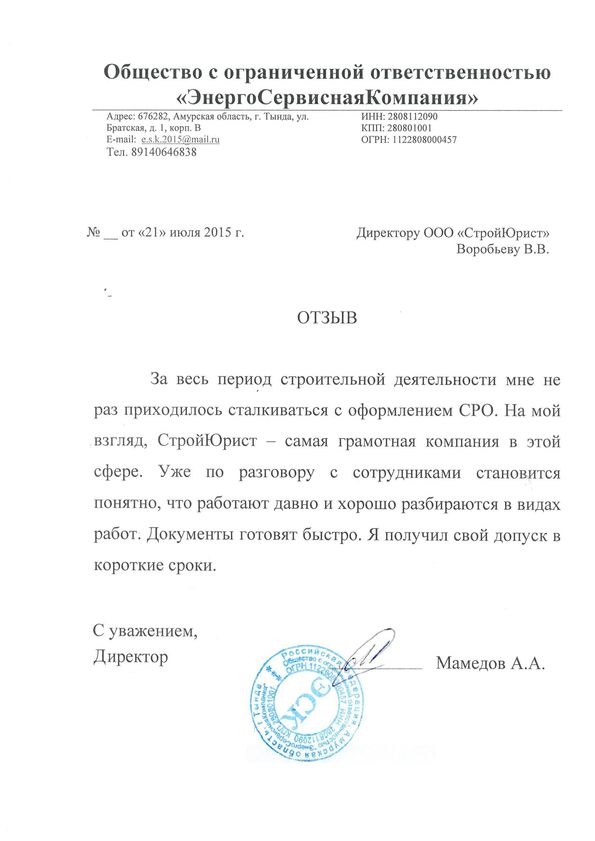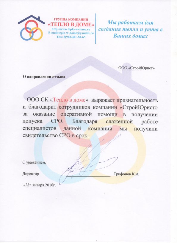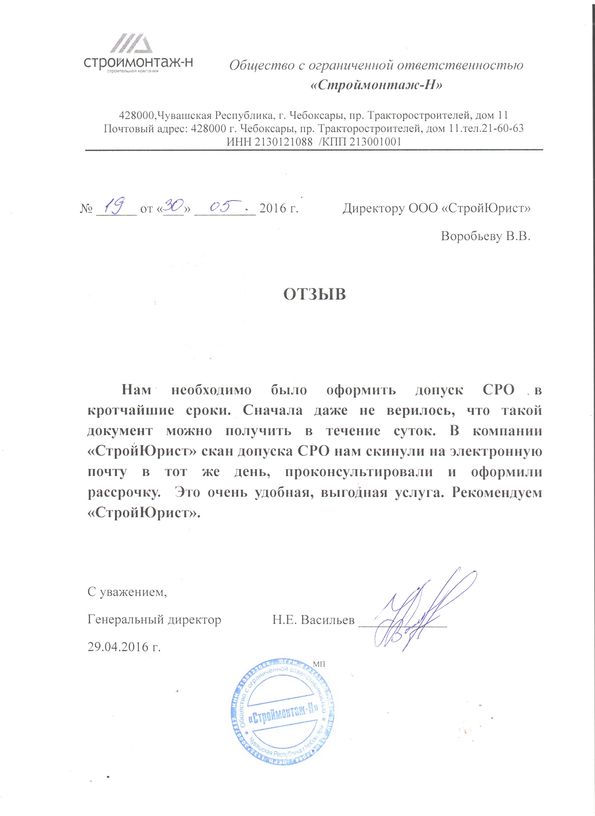 Отзывы клиентов "СтройЮрист" по вступлению в СРО в Красногорске