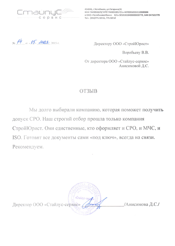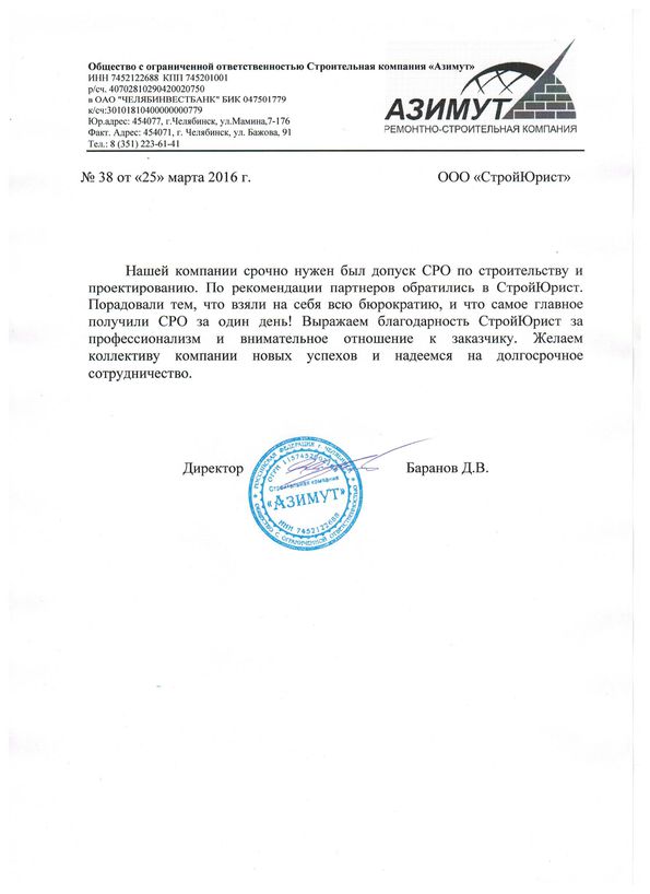 Отзывы клиентов "СтройЮрист" по вступлению в СРО в Красногорске
